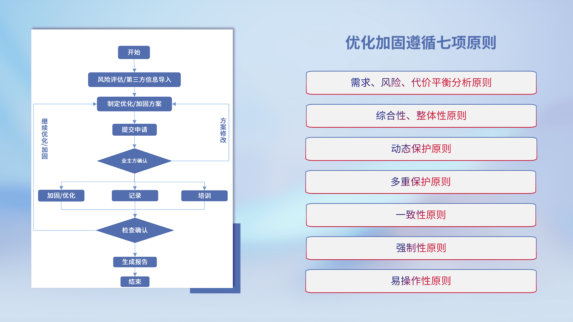 最大程度利用现有资产,,,对评估发现的问题进行封堵与整改,,,,防止漏洞被利用,,,提升整体网络安全性,,,,为客户带来高标准的优化加固服务。。。。