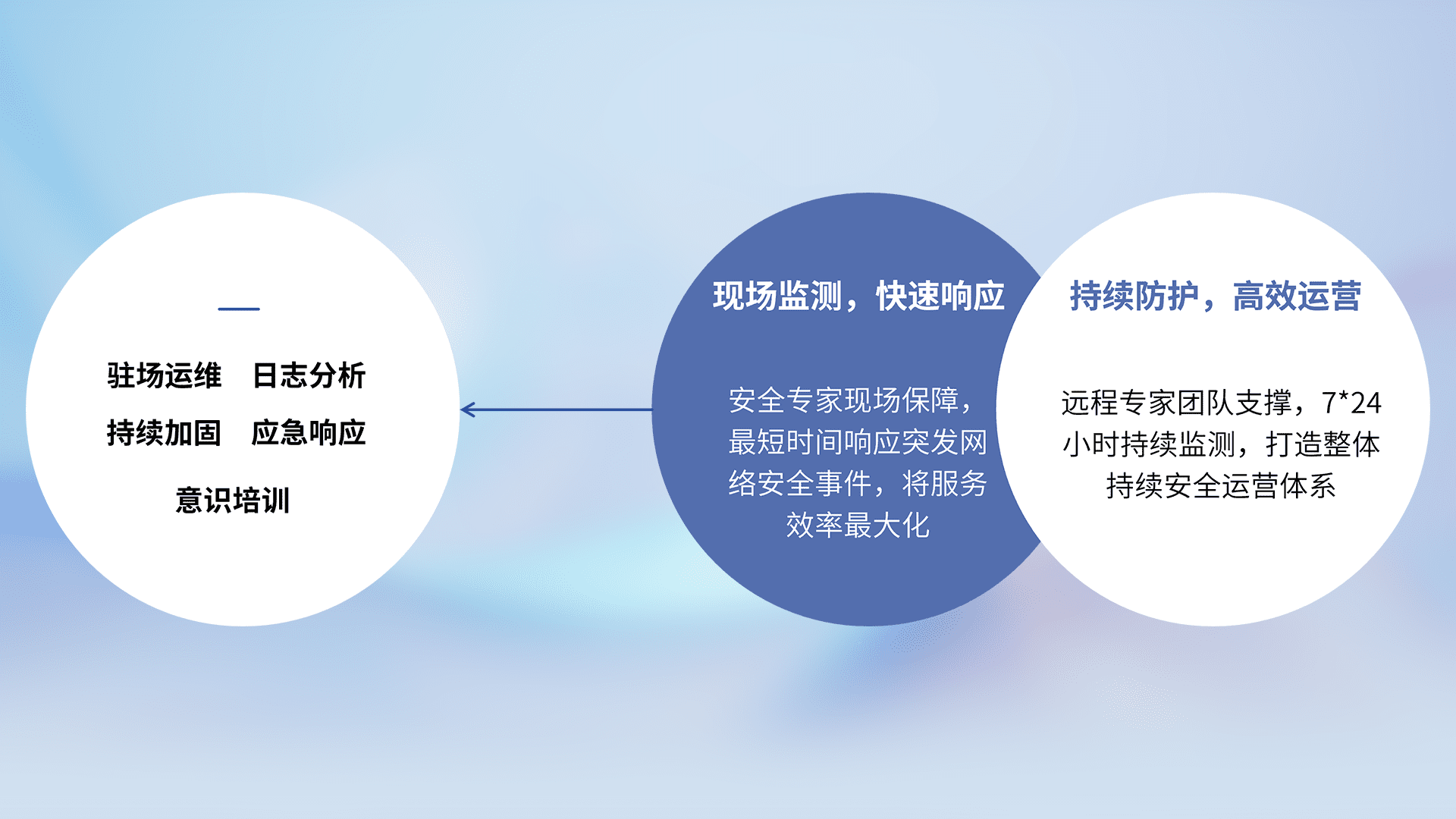 7X24小时持续监测安全事件,保持安全策略有效性,降低资产脆弱性风险,,,,精准拦截黑客攻击,,,减少被黑客利用的机会,,,,第一时间遏制,,降低损失。。。。